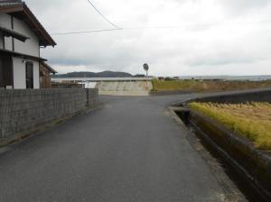 厚陽小学校・中学校の前を通り過ぎ、道なりに歩きます。少し進むと左側には田んぼが広がってきます。車通りは少ない道です。