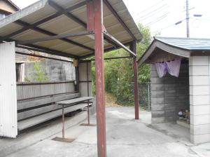 歩いてしばらくすると梅田自治会館、疫神社が見えます。