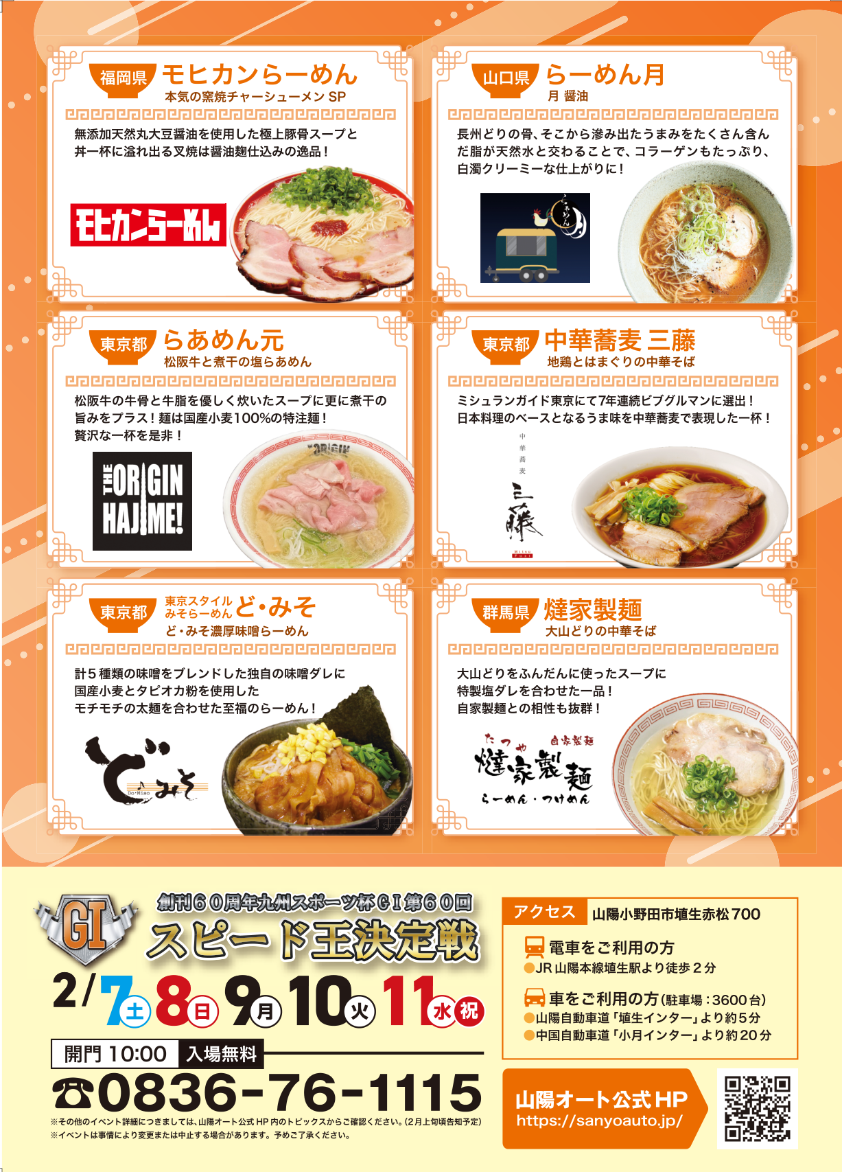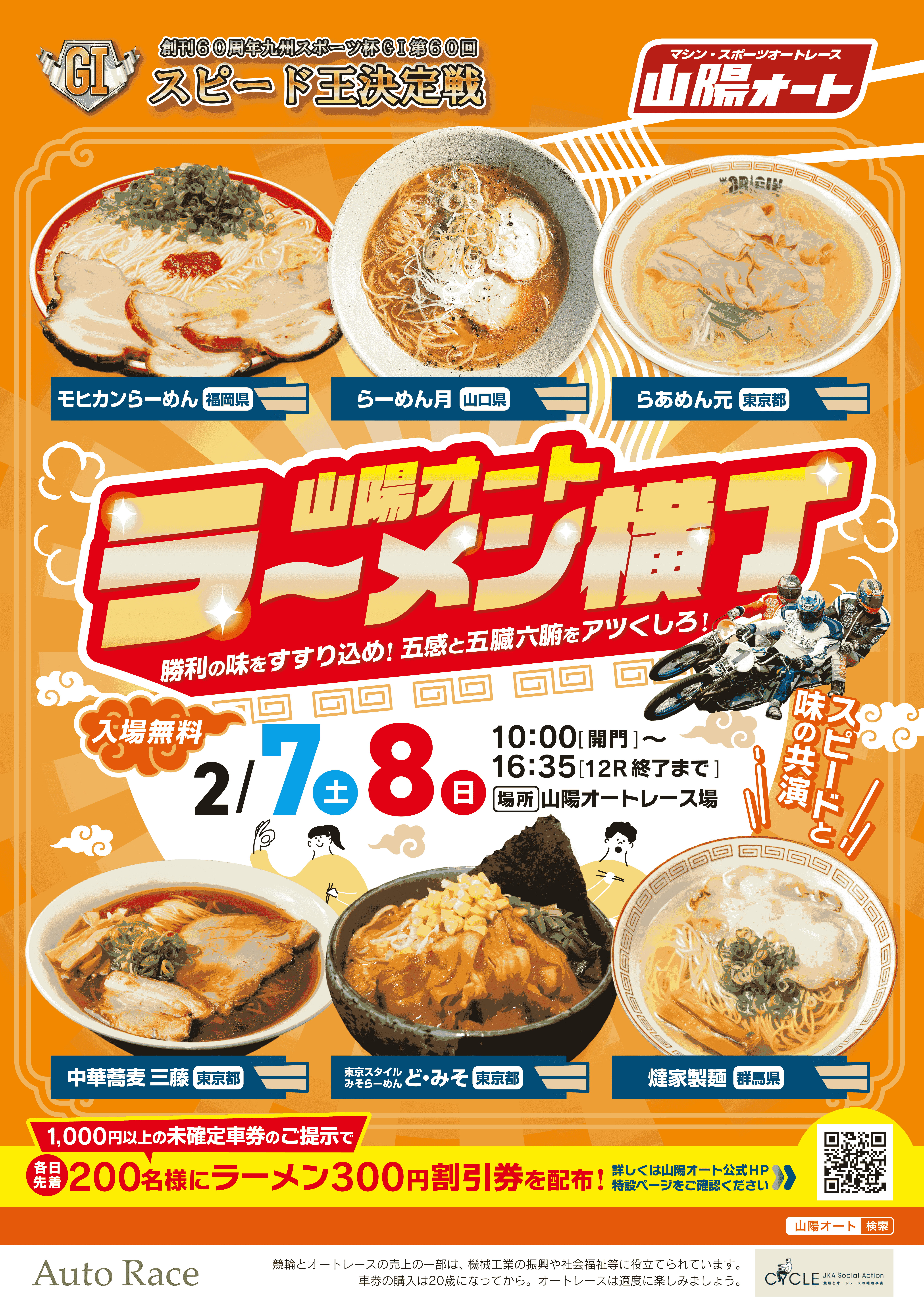山陽オートで幕をあける「創刊60周年九州スポーツ杯GI第60回スピード王決定戦」において『山陽オートラーメン横丁』を開催します!