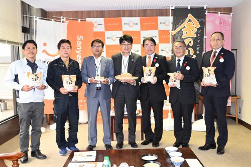 JA山口県宇部統括本部の皆さんが、本市で生産された健康志向に応える玄米食の品種「金のいぶき」を「ねたろうさんのお米」としてブランド化して販売を始めることの報告のため、表敬訪問されました。実際に試食もさせていただきました。この「金のいぶき」は、もちもち食感で甘かったです。栄養価も高く、美容と健康にも良いとのことでした。今後、市内での販売やふるさと納税の返礼品としても取り扱うとのことです。