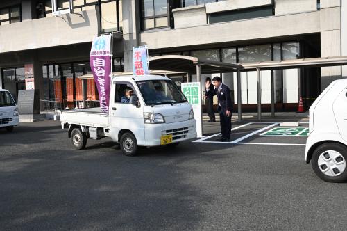 不法投棄防止の取組として、不法投棄撲滅キャンペーン出発式が行われました。市自治会連合会及び市快適環境づくり協議会の皆さんが市内を街宣し、不法投棄禁止の呼びかけや不法投棄が犯罪であることの周知を行います。本市の環境保全にご尽力いただき、ありがとうございます。