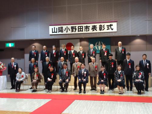 令和4年度山陽小野田市表彰式が行われ、一般表彰の部26名、スポーツ及び芸術文化奨励賞の部3名の皆様が受賞されました。