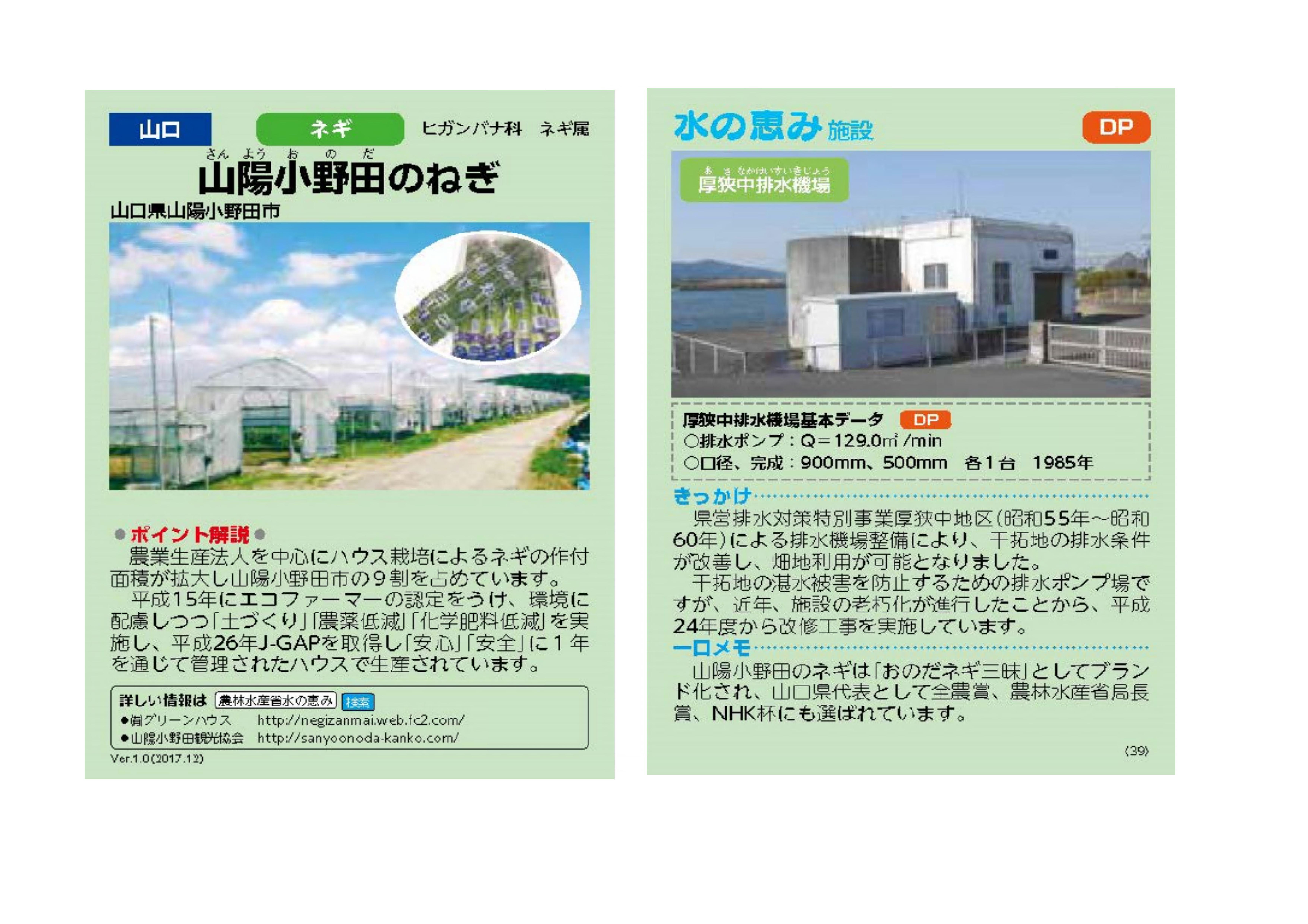 「水の恵みカード」は、地域の農産物と用水路や取水堰等の農業水利施設(水の恵み施設) のことをわかりやすく紹介するため、農林水産省と共に推進している取組です。
