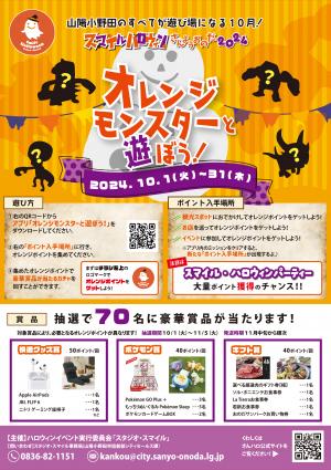 市のイメージカラー「オレンジ」と親和性の高いハロウィンをモチーフとして、オレンジやハロウィンを演出に活かしながら、官民一体となって本市の魅力をPRするイベント「スマイルハロウィンさんようおのだ2024」を開催します!